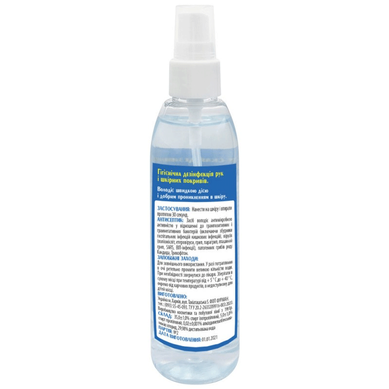 Состав: спирт (70%), дистиллированная вода, алкилдиметилбензиламмоний хлорид.