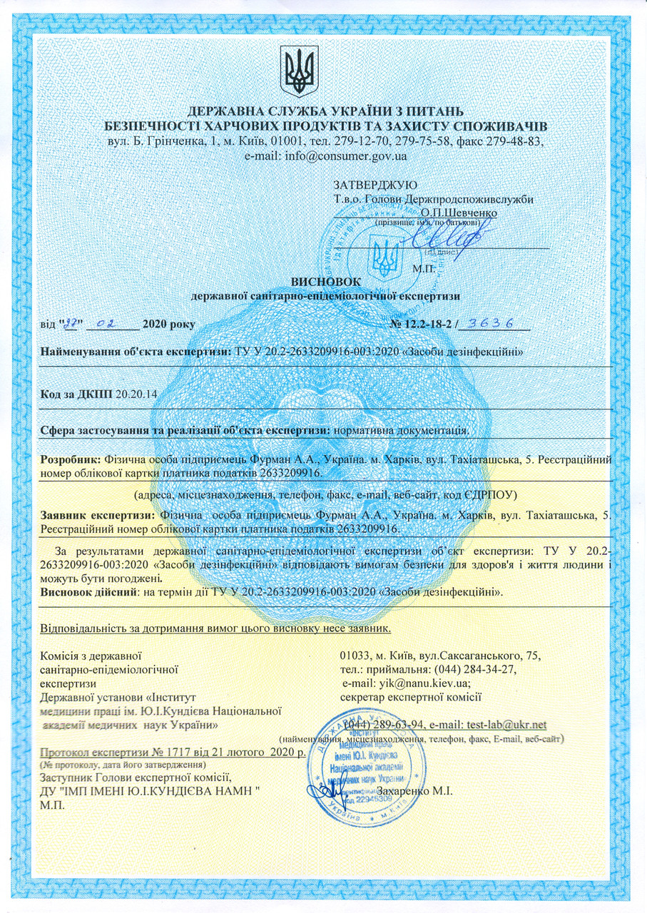 Производится согласно ТУ У 20.2-2633209916-033:2020 "Засоби дезінфекції".