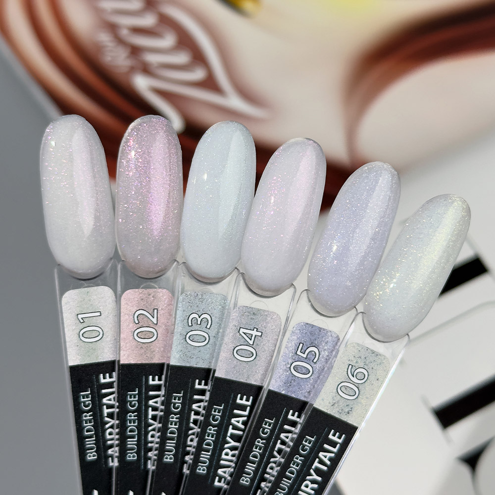 Fairytale Builder Gel – гели для наращивания и укрепления со сказочным сиянием. Коллекция Fairytale – это 6 нежных оттенка с деликатным шиммером, которые созданы для изящных, мечтательных образов. Гели имеют среднюю консистенцию и идеально выравниваются по поверхности ногтя, обеспечивая комфортную работу. Время полимеризации: 90 секунд.