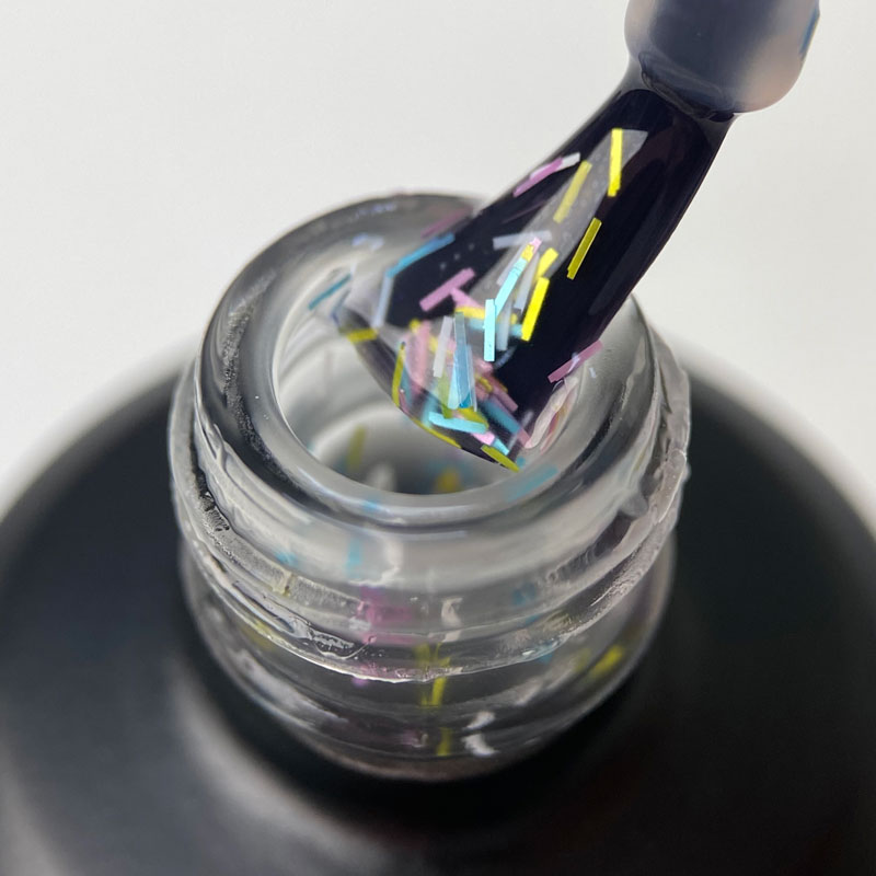 ART Top Cake Pops Matte – матовый топ без липкого слоя с цветной посыпкой, которая не торчат на поверхности ногтя, а идеально прилегает к нему. Имеет среднюю консистенцию, идеально ложится и не затекает под кутикулу, не имеет липкий слой. ART Top Cake Pops Matte способен создать модное, необычное и интересное покрытие на ногтях. Красиво смотрится как на светлых оттенках, так и на темных.