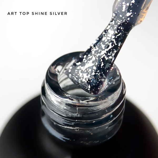 ART Top Shine Silver - закрепитель для гель-лака с мелкими серебристыми хлопьями, 10 мл