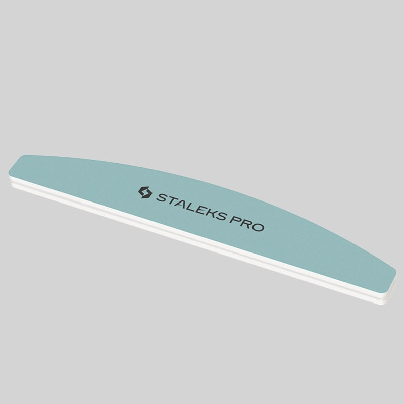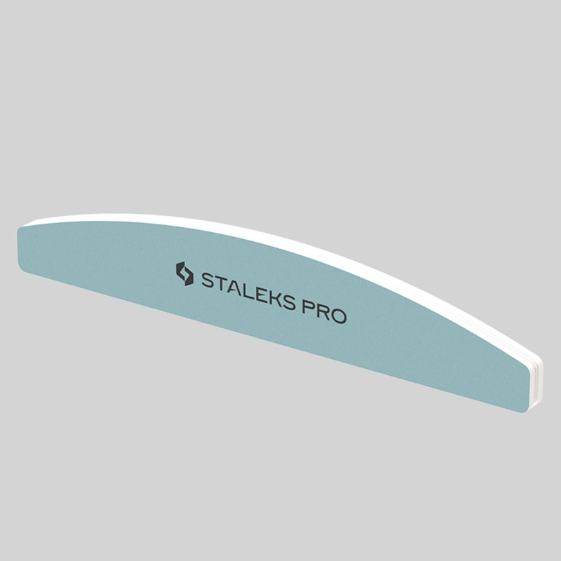 Staleks Pro баф для ногтей полумесяц для шлифования ногтей 400/3000 грит используют на завершающем этапе маникюра и педикюра. Его деликатный абразив помогает сгладить шероховатость ногтевой пластины и отполировать до натурального блеска натуральные ногти. Инструмент выполнен в форме полумесяца с закругленными и дополнительно обработанными торцами, исключающими травмирование клиента и дающими мастеру удобно работать у кутикулы и синусов.