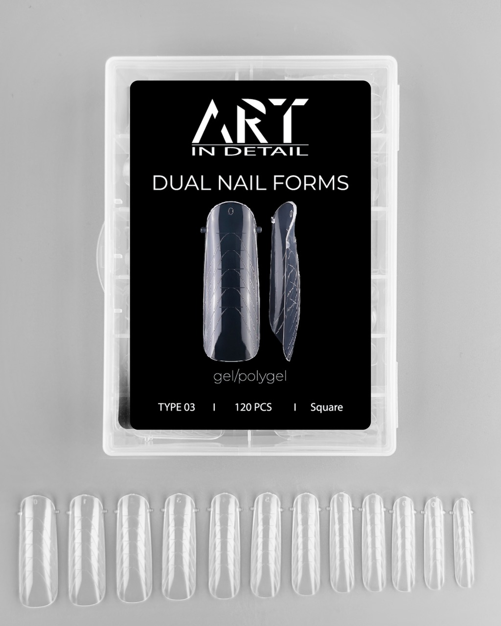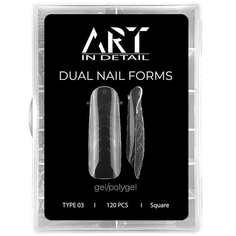 ART Dual Nail Forms – многоразовые верхние формы для наращивания ногтей. Формы упругие, отлично держат форму и снимаются без труда после полимеризации с любым материалом. Подходят для использования с материалами разного типа: гели, гели-желе, поли-гели. Усовершенствованная форма создаст архитектуру ногтей без лишних усилий даже для начинающих в моделировании.