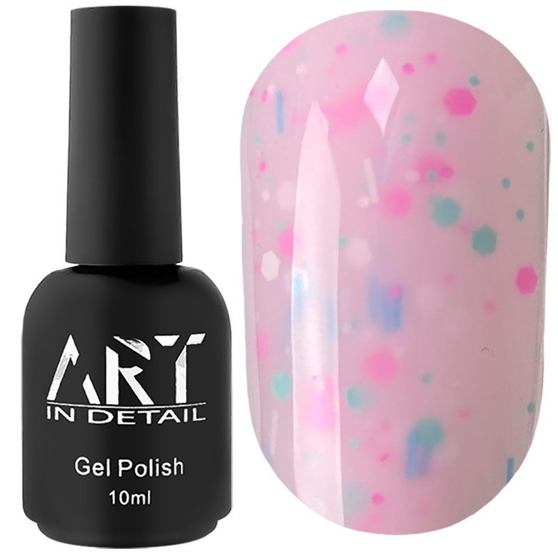 ART Milkshake Base - коллекция нежных цветов баз с различными цветными вкраплениями, такое покрытие очень красиво смотрятся на ногтях, особенно в теплое время года. Стильный, аккуратный дизайн за короткое время. Так же можно делать растяжку (градиент) из нескольких цветов, для получения нового, уникального, и красивого дизайна.
