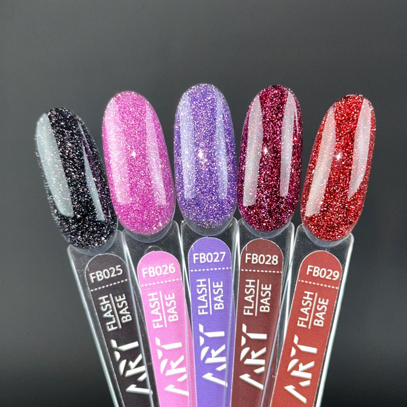 Коллекция светоотражающих баз ART Flash Base - это сочетание невероятно красивых оттенков с ярким сиянием, при попадании света на покрытие.