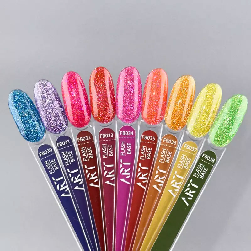 Новые, яркие, летние оттенки светоотражающих баз ART Flash Base – это сочетание невероятно красивых оттенков с ярким сиянием, при попадании света на покрытие.