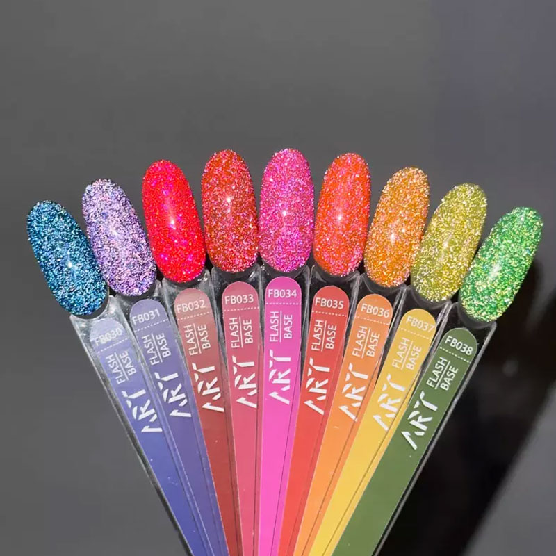 Новые, яркие, летние оттенки светоотражающих баз ART Flash Base – это сочетание невероятно красивых оттенков с ярким сиянием, при попадании света на покрытие.