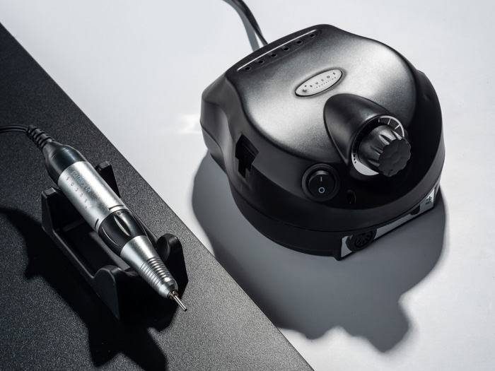 Скорость вращения регулируется при помощи поворотного регулятора, расположенного на фронтальной поверхности аппарата. Направление вращения фрезы так же можно менять при помощи специального переключателя, расположенного в нижней части фронтальной поверхности прибора.