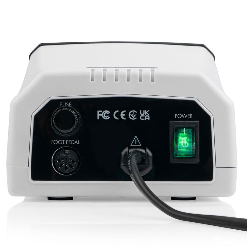 Блок управления компактен и займет минимум места на рабочем столе. LED-дисплей аппарата для маникюра профессионального Криптон 2 XPS-350 показывает текущие обороты и режим работы фрезера. Все кнопки управления (форвард/реверс, ножное управление, регулировка скорости) расположены на передней панели.