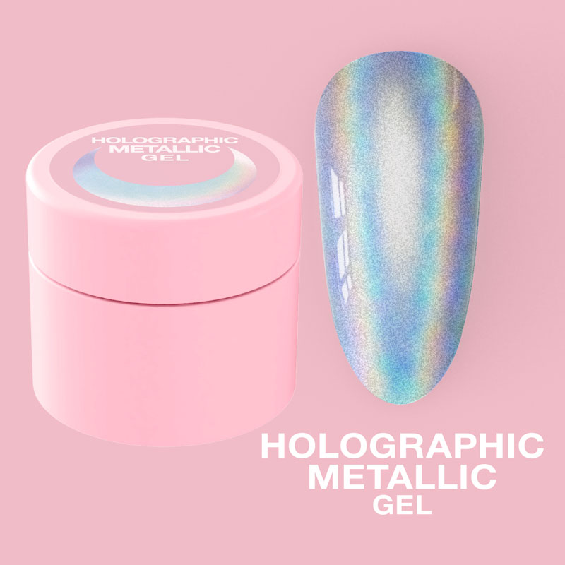Holographic Metallic Gel – это голографическая металлическая гель-краска для дизайнов. Продукт идеально подходит для рисования самых разных композиций, а голографический эффект краски придаст сияющий и неповторимый блеск!