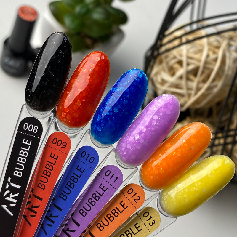 Коллекция ART Bubble состоит из невероятных гель-лаков с прозрачной основой, наполненные матовыми белыми частичками разного размера. Они просто обязаня быть в твоей коллекции!