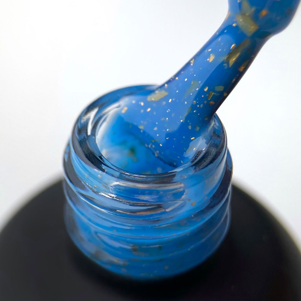 Гель-лак ART Potal с золотыми хлопьями потали. Поталь представляет собой имитацию сусального золота, она очень тонкая и деликатная. В сочетании с гель-лаком этот материал смотрится очень красиво.