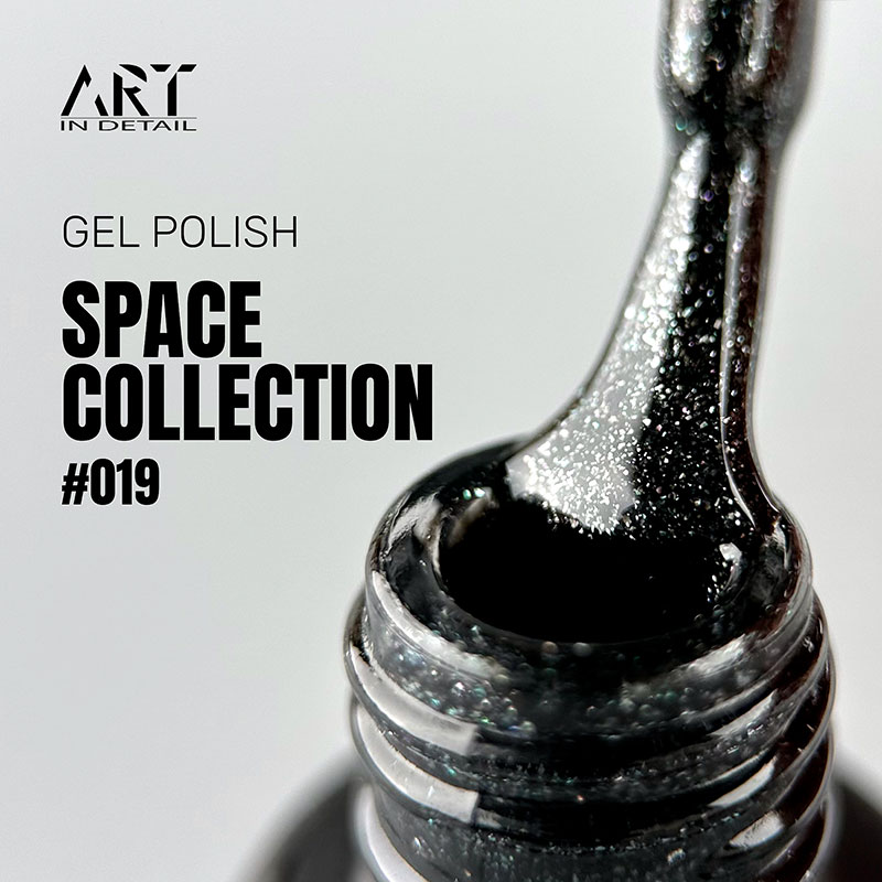 ART SPACE Gel Polish – коллекция гель-лаков с блестками. Гель-лаки высокопигментированы, обеспечивают ровное и стойкое покрытие в 1-2 слоя. Обладают средней консистенцией, которая позволяет легко нанести гель-лак под кутикулу, без утолщения ногтевой пластины и растекания.