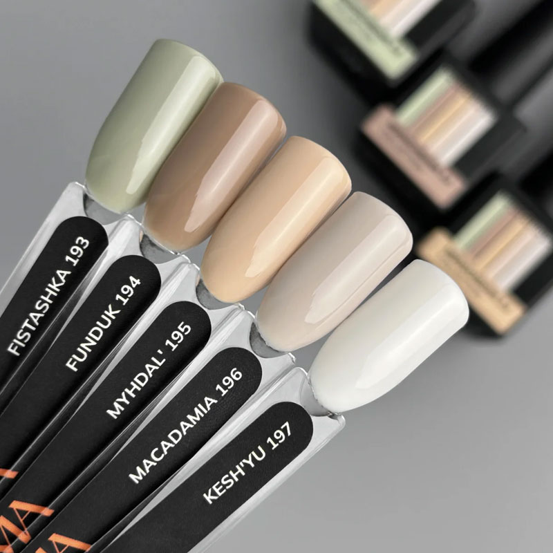 Особенность коллекции состоит в том, что цвета дополняют и усиливают друг друга. Каждый оттенок называется как орешек, которые самостоятельно смотрятся аппетитно, а вместе создают неповторимо вкусное ассорти.