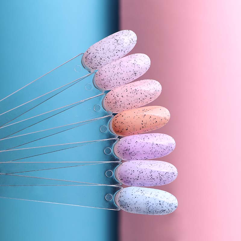 Kira Nails Чиа Пудинг - коллекция гель-лаков с вкраплениями, которые напоминают десерт Чиа-пудинг. Можно использовать как самостоятельно, так и с дизайнами.
