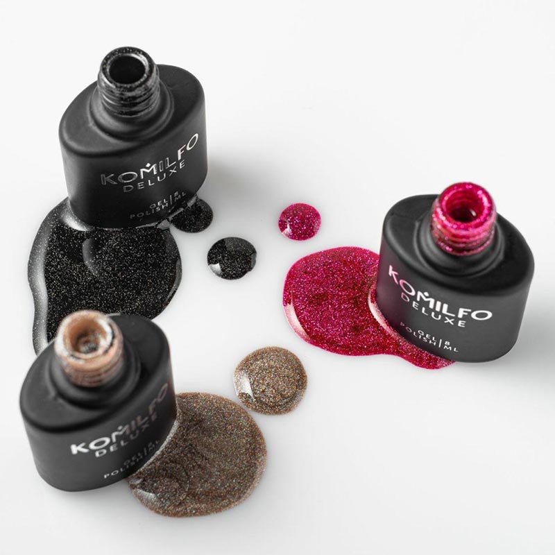 Komilfo Deluxe Series - это очень пигментированные гель-лаки, плотно ложатся, имеют отличную износостойкость, удобны в нанесении, самовыравниваются по ногтевой пластине, легкорастворимые, ароматизированы и прекрасно совмещаются с продукцией любых производителей!