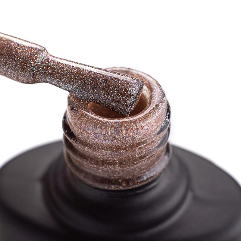 Гель-лак Komilfo DeLuxe Series G025 (светло-коричневый с разноцветными блестками), 8 мл