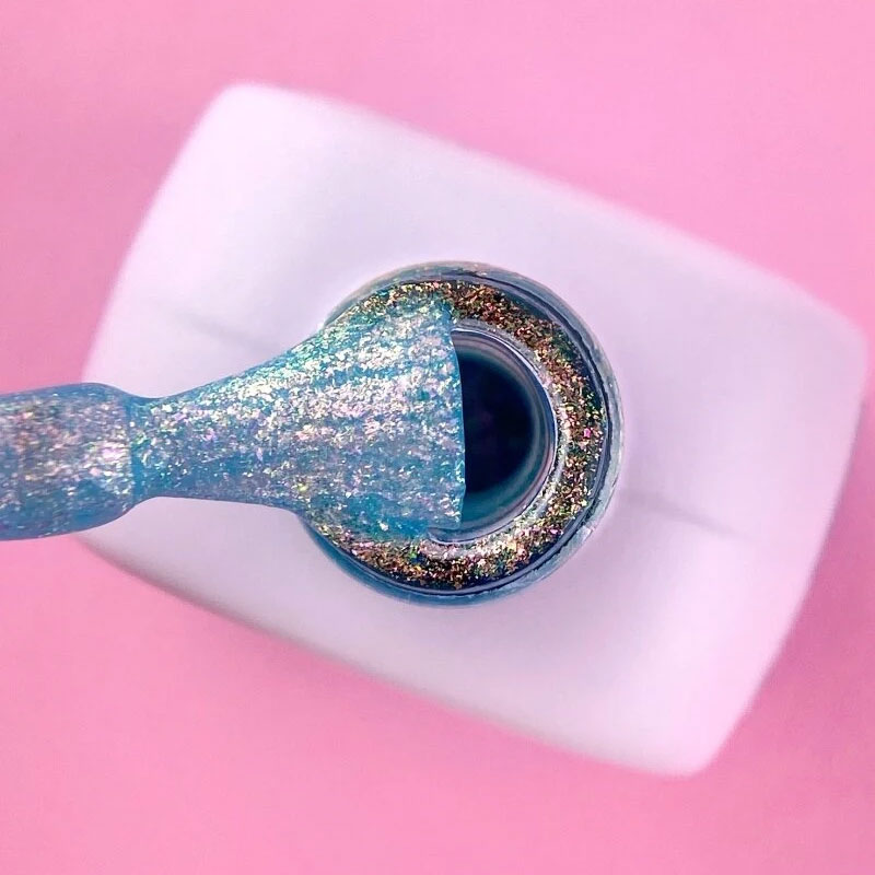 Это гель-лак с мелким, жидким шиммером с эффектом втирки.