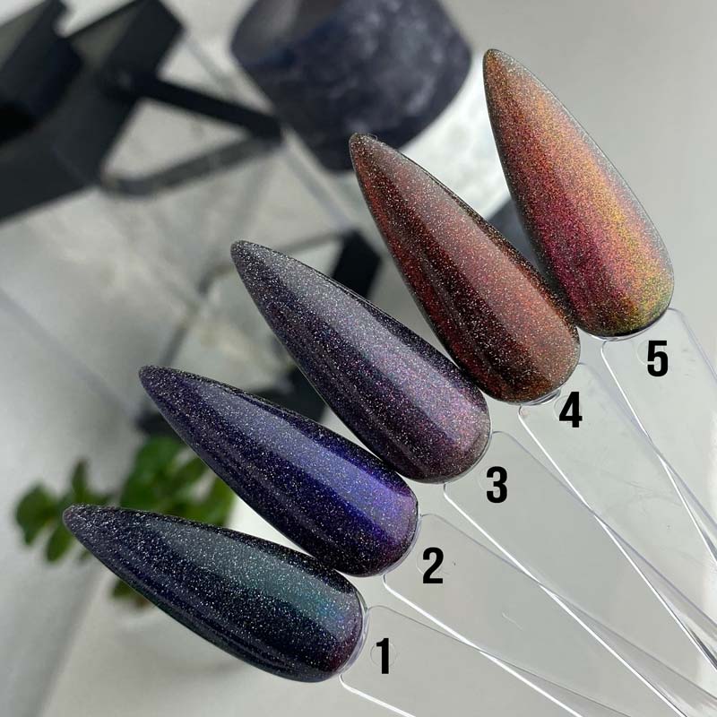 Наносить гель-лаки SAGA Cat Chameleon можно как с магнитом, чтобы получился мерцающий переливающийся блик-хамелеон, так и без него. Оба варианта демонстрируют самые яркие визуальные особенности декоративных покрытий и их изумительную сверкающую красоту.