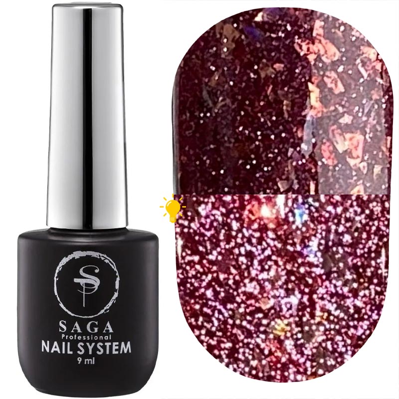 SAGA Fiery Gel - это гель-лаки с шикарным сиянием микрошимерных блесток, которые придаёт гель-лаку невероятную красоту вне зависимости попадания прямых лучей искусственного света. Но и изюминкой является светоотражение в темном помещении. Он сделает обладательницу самой заметно и сверкающей на любой вечеринке.
