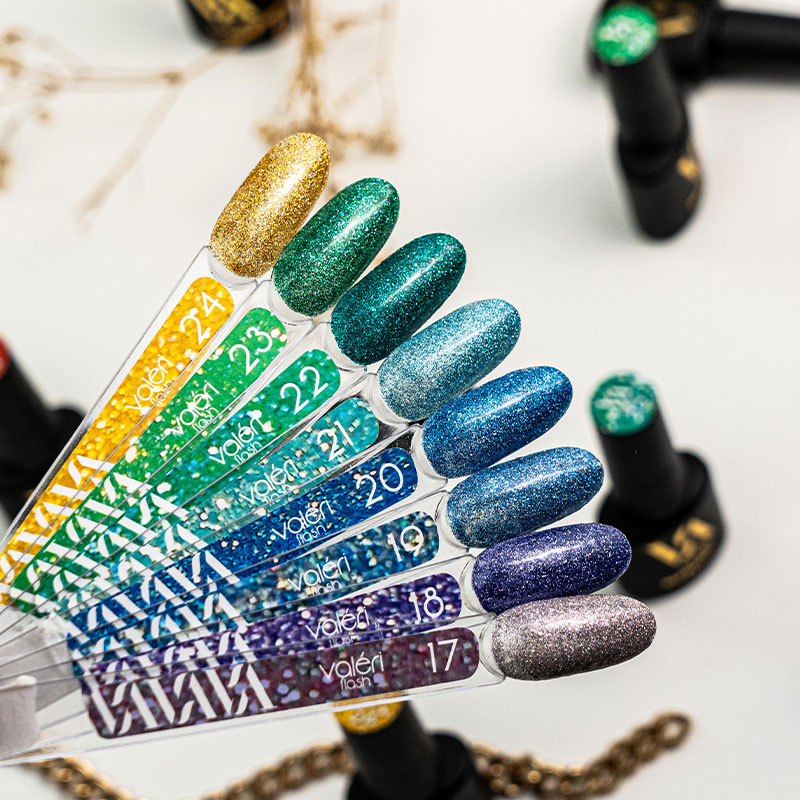 Гель-лаки Valeri Flash - это коллекция светоотражающих гель-лаков, в которую входит 8 невероятно красивых цветов. Имеют невероятный внешний вид при попадании на них света.