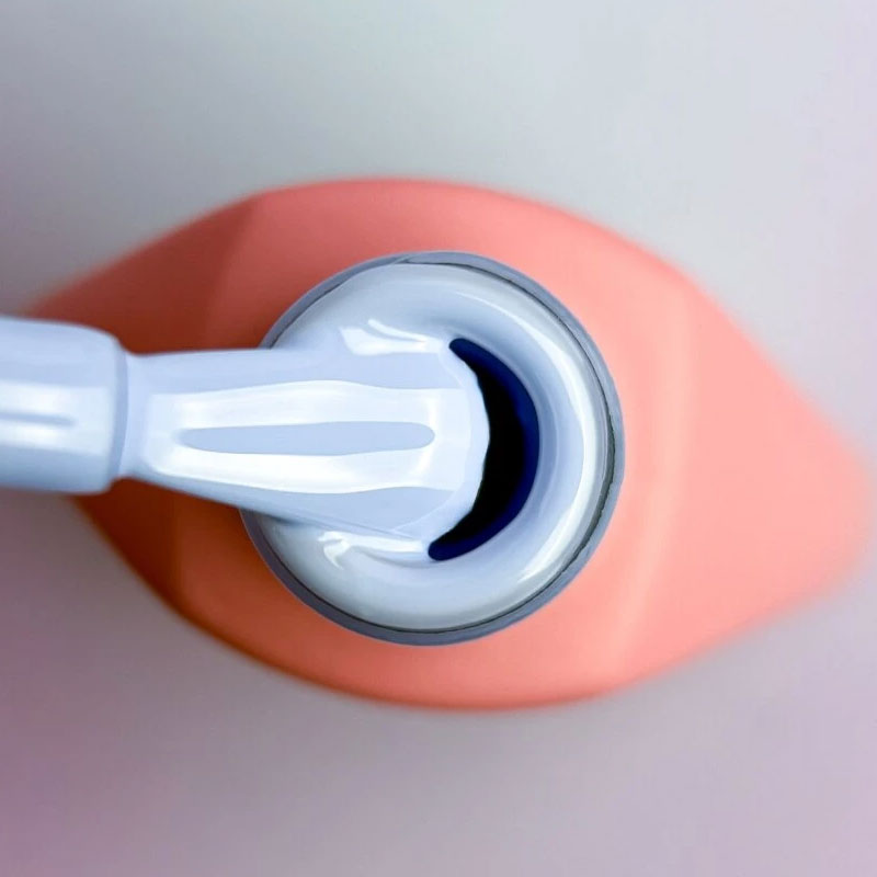 - Наносим гель-лак (1–2 тонких слоя). Набираем материал на кисточку, прорисовываем центр ногтя, а затем боковые стенки. Кисточкой для тонких линий подводим к кутикуле. Первый слой всегда должен ложиться полупрозрачно.