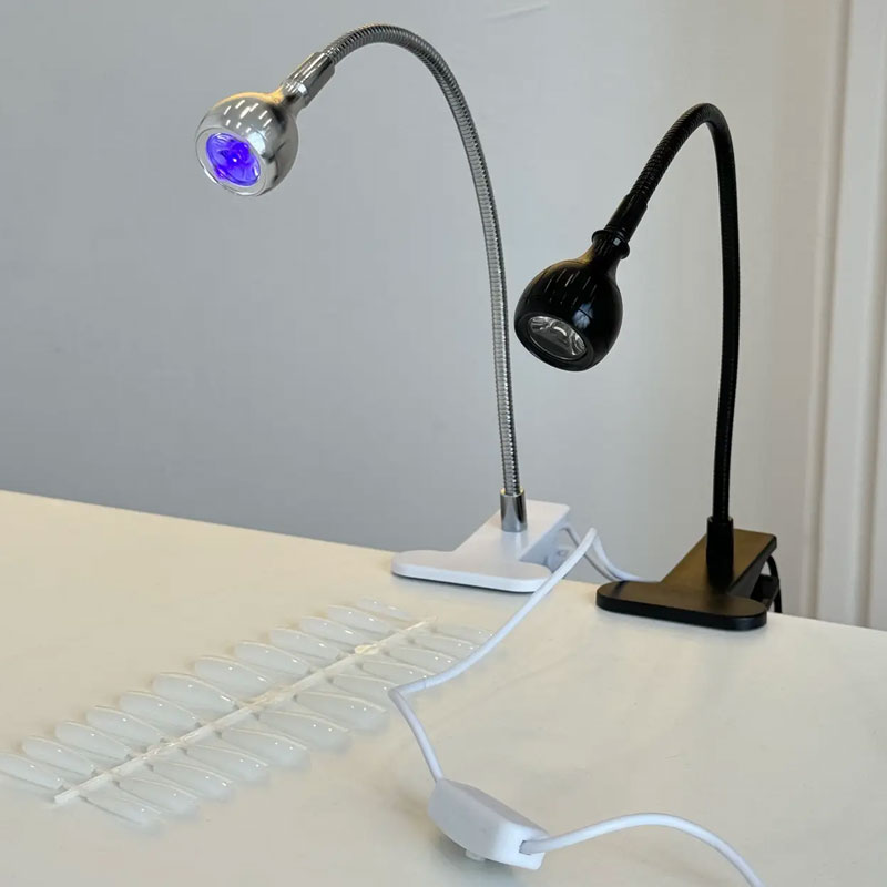 Портативная лампа для маникюра : светодиодная лампа для маникюра и промежуточной точечной сушки ногтей при наращивании ногтей на гелевые типсы, верхние формы, быстрой фиксации объемных дизайнов(бульонок, страз) Работает от USB шнура. Кнопка вкл/выкл на шнуре. Ножка лампы гибкая, гнется под любым углом на нужную вам высоту позволяет направлять лучи точно.