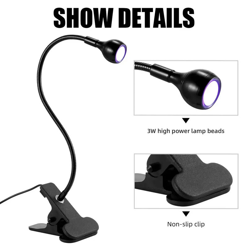 Гибка лампа UV для сушки гель-лака, гелевых типс с USB-разъемом (настольная с прищепкой) 3 Вт Чёрная
