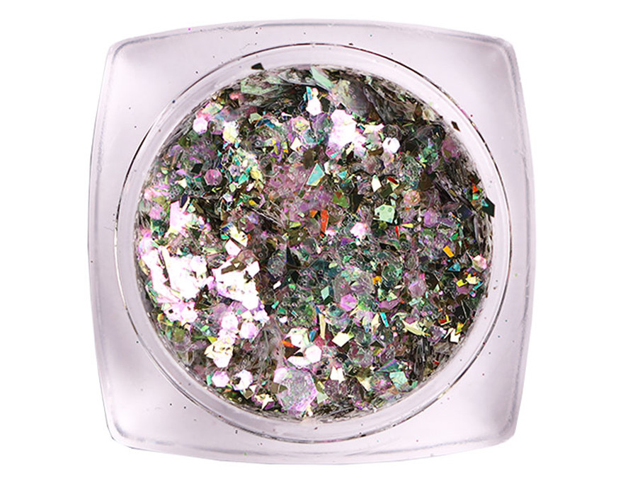 Очень красивый декор и новый хит от Komilfo! Блесточки хамелеон - витражное стекло. Этот удивительный декор не просто меняет свой оттенок, но еще «отбивает» лучи солнца и потрясающе смотрится на любой подложке. Перекрывать только топом без УФ фильтров!