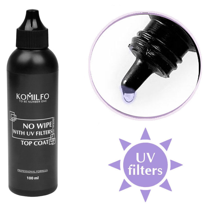Топ для гель-лака без липкого слоя с УФ-фильтрами Komilfo No Wipe Top 100 мл (без кисточки)