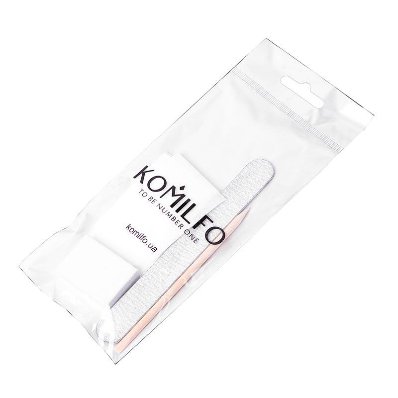 Komilfo одноразовый набор №4 пилочка-капля 150/150, бафф 100/180, апельсиновая палочка, 10 безворсовых салфетк