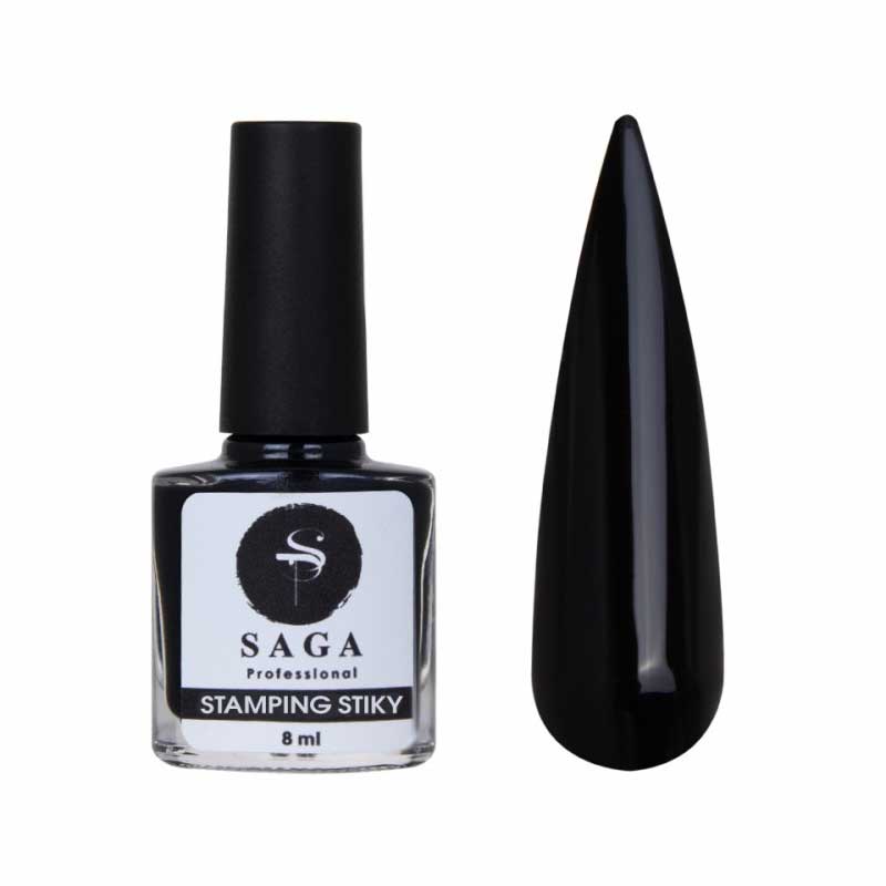 Saga Professional Stamping Paint With Sticky Layer - лак-краска для стемпинга, которая имеет липкий слой. Может использоваться как в традиционном стемпинг-дизайне, так и в трендовом сочетании "стемпинг+литье фольгой".