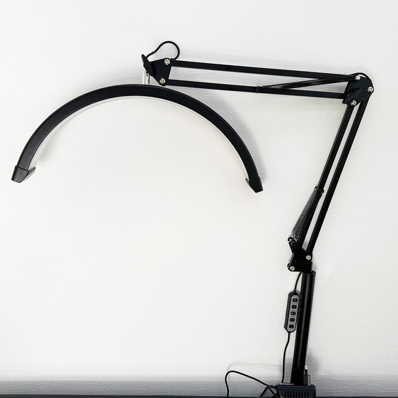 Специальная бестеневая лампа настольного типа, которая легко крепится к столу или другой поверхности благодаря крепкой струбцине. Обеспечивает качественное освещение и не затеняет рабочую зону. Незаменима для мастеров, работающих в маникюрной сфере, косметологов и других бьюти-направлениях. Также позволяет снимать качественные видеообзоры, ролики или просто читать.