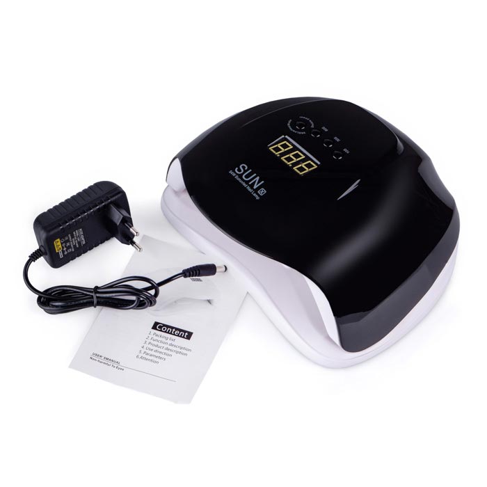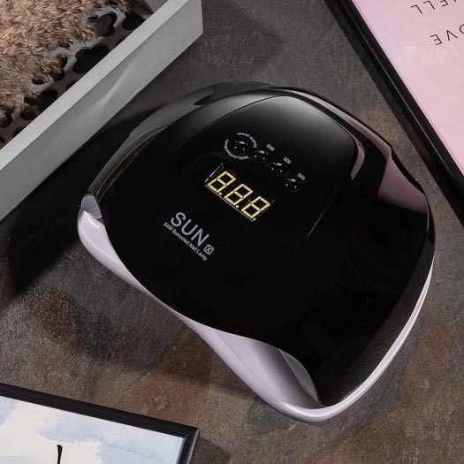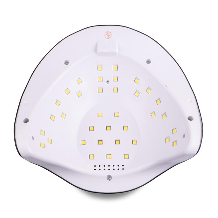 Внутренняя камера лампы просторная, что удобно как для маникюрных, так и для педикюрных процессов. Верхняя панель имеет четыре кнопки таймера и дисплей.