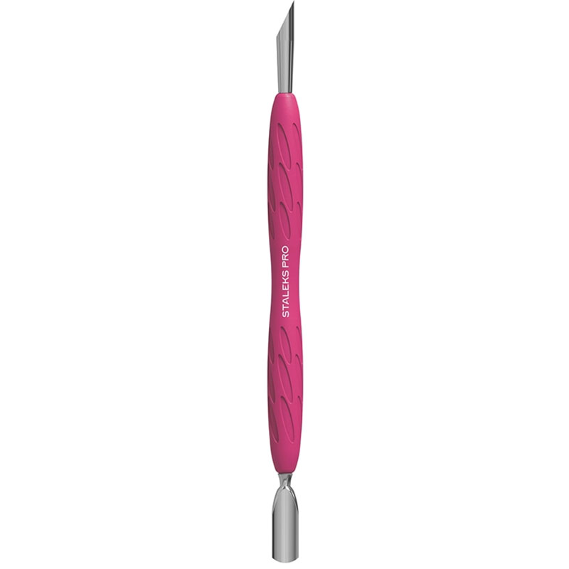 Маникюрная лопатка STALEKS PRO UNIQ 10 TYPE 2 PQ-10/2 предназначена для маникюра и педикюра. Инструмент с двумя рабочими частями — закругленным узким пушером на одном конце, и скошенным — на другом. Узкая часть подходит для обработки кутикулы и птеригия при работе с узкими и средними ногтевыми пластинами, а пушер скошенный используется для поднятия и отодвигания сильно налипшей грубой кутикулы, очистки свободного края ногтя, удаления потоков гель-лака. По форме этот пушер выглядит как металлическая апельсиновая палочка.