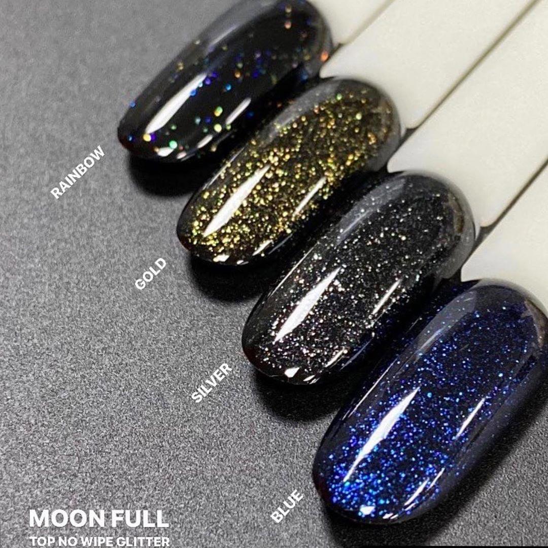Top Glitter MOON FULL - топ-покрытие без липкого слоя для гель-лака с микроблеском. Идеальный для придания прочности и защиты маникюра от сколов, трещин и затираний на длительный срок. Придает глянцевый блеск ногтям и красивый шиммерный отлив. Не требует процедуры снятия липкости