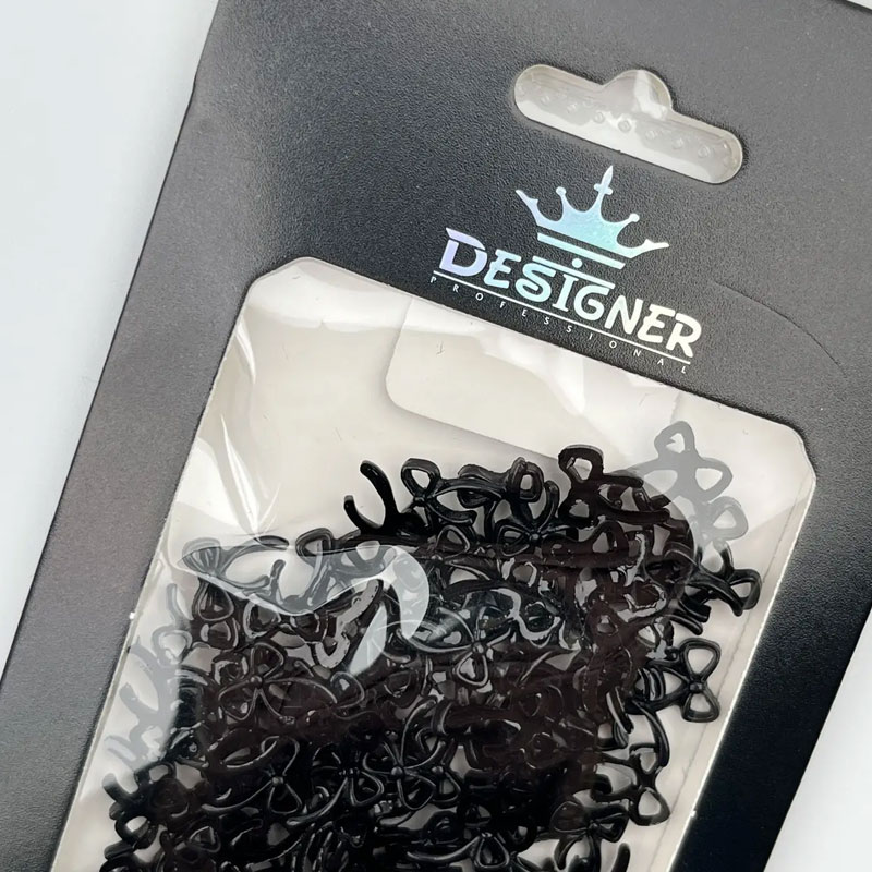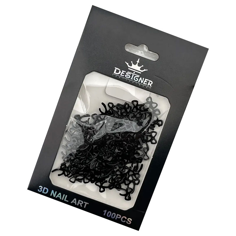 Набор объемного 3D декора Designer Черные тонкие бантики – В10 100 шт./уп.