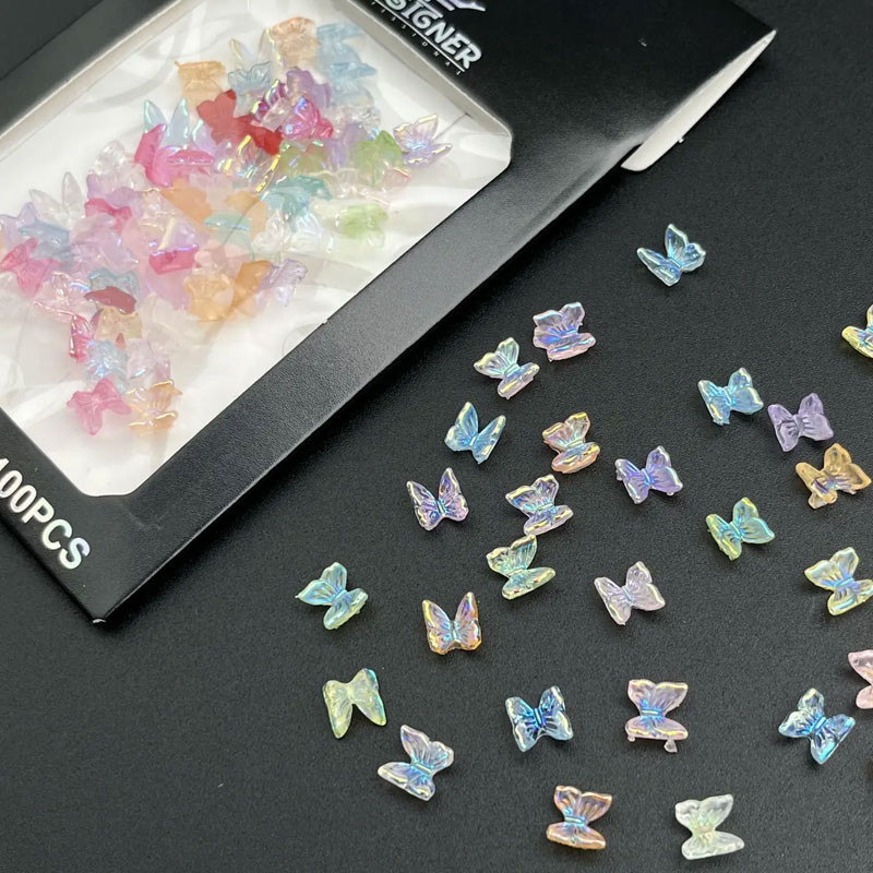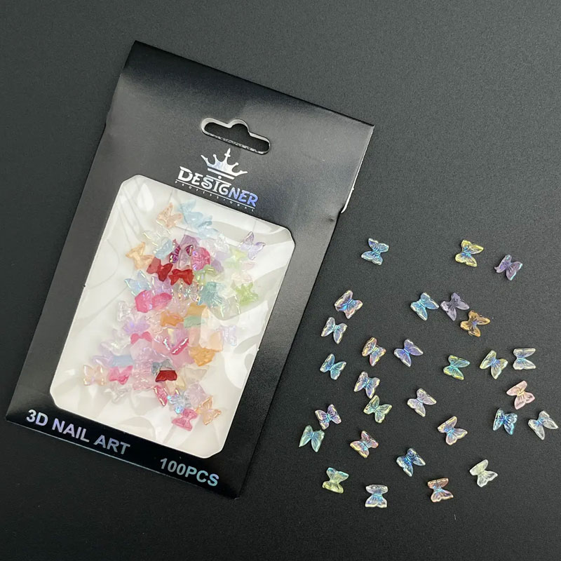 Набор объемного 3D декора Designer Разноцветные бабочки с переливом – D6 100 шт./уп.