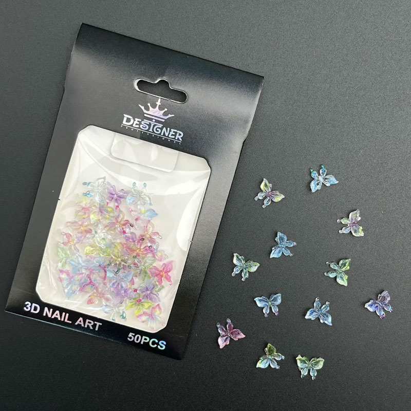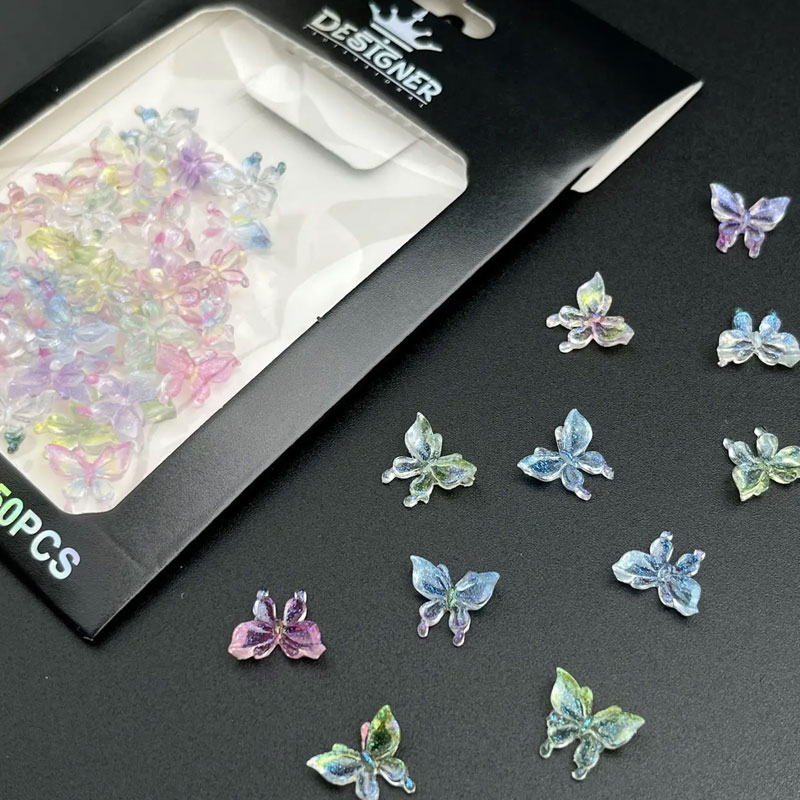 Набор объемного 3D декора Designer Разноцветные бабочки с шиммером - D4 100 шт/уп.