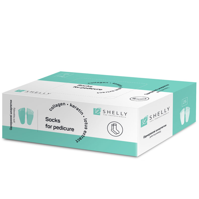 Одноразовые носки для педикюра Shelly позволяют сделать классический или европейский педикюр без использования воды и педикюрной ванночки. Носки идеально готовят ногти для полировки и нанесения покрытия. Позволяют выполнять педикюр быстро, гигиенически и легко. В результате, кутикула легко обрабатывается апельсиновой палочкой, ногти становятся белее и крепче, кожа мягкой и шелковистой.