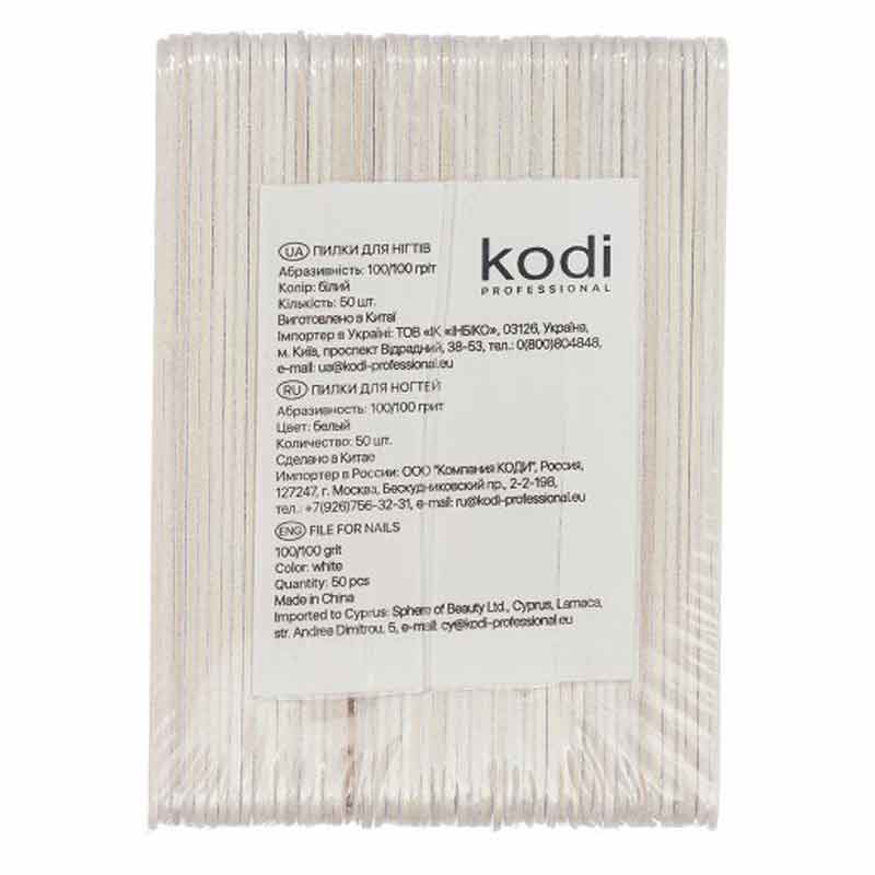 Набор пилок для ногтей Kodi Professional 100/100, цвет: белый (50шт/уп)