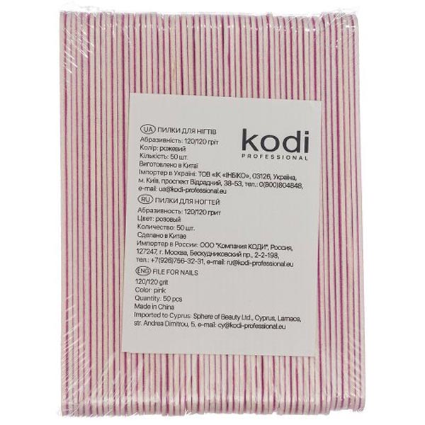Набор пилок для ногтей Kodi Professional 120/120, цвет: розовый (50шт/уп)