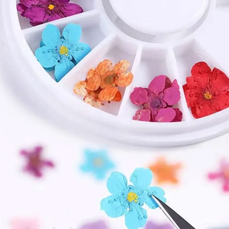 Набор сухоцветов для дизайна и декора ногтей в карусели 24 шт