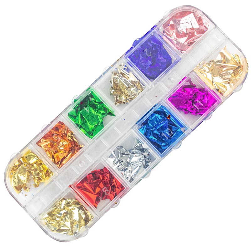 Набор жатой фольги для ногтей, 12 видов