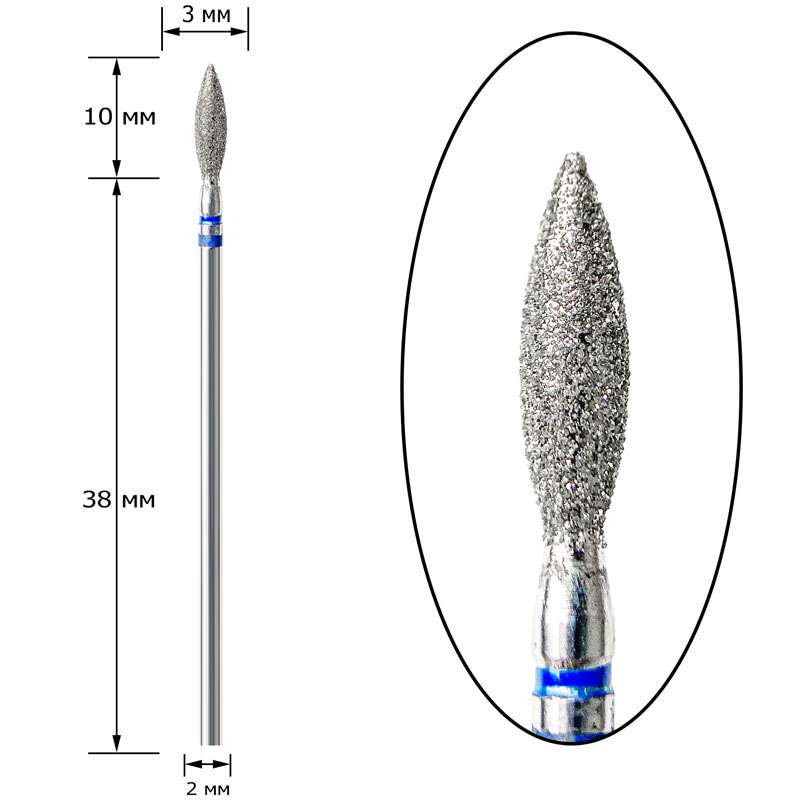 Алмазные насадки применяются в аппаратном и комбинированном маникюре и педикюре для работы с кутикулой. С их помощью можно поднимать, срезать и зашлифовывать кутикулу, шлифовать боковые валики, вычищать птеригий, обрабатывать мозоли и натоптыши, шлифовать трещинки.