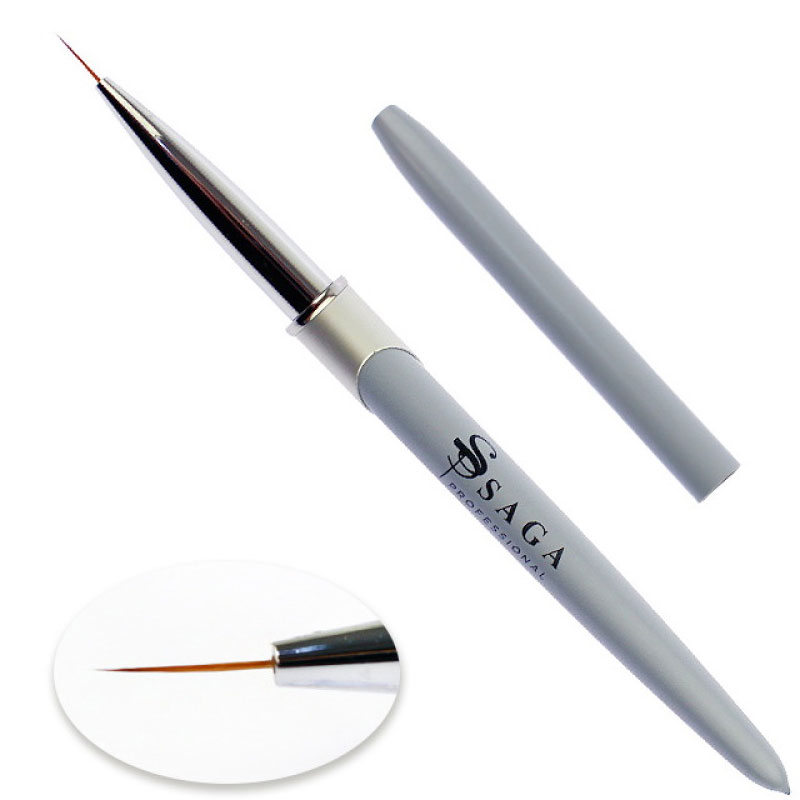 Кисть для рисования Saga Professional New 01 – инструмент, предназначенный для нейл-росписи. Используется в разных художественных техниках. Рабочая зона кисточки сделана из искусственного ворса, тонкий пучок, округлой формы типа "лайнер". Такой инструмент незаменим для прорисовки тонких линий, геометрических узоров, мелких завитков, вензелей и миниатюрных элементов.