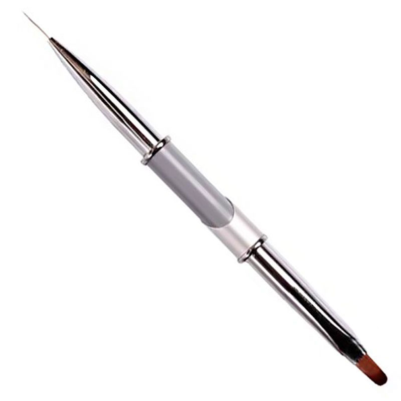 Многофункциональная двусторонняя кисточка с одной стороны имеет овальную форму, такой вариант позволяет работать с акрилом и гелем. Форма ворса с другой стороны кисточки – тонкая и удлиненная, предназначенная для прорисовки тонких линий.