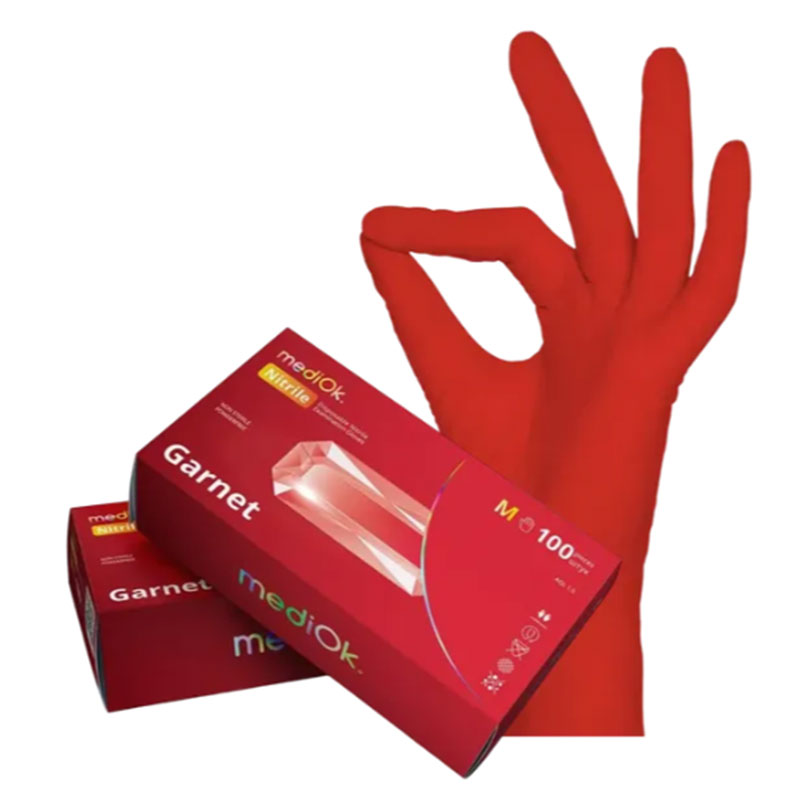 Перчатки нитрил неопудренные нестерильные MediOk Garnet 100 шт, S