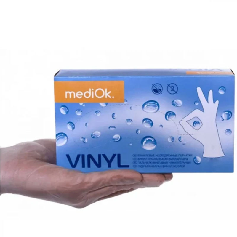 Перчатки виниловые прозрачные Mediok неопудренные изготавливаются из ПВХ (поливинилхлорида). Предназначены для использования в смотровых и стоматологических кабинетах при работе с лабораторными образцами. Рекомендованы для людей, страдающих аллергией на латекс. Благодаря устойчивости к химическим веществам могут быть использованы в фармацевтической промышленности, быту, индустрии красоты, пищевой, автомобильной, строительной промышленности и других отраслях.