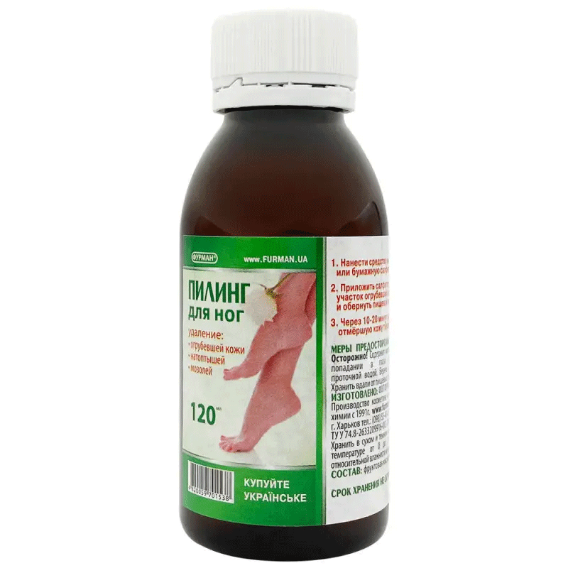 Пилинг для ног Фурман (густой на фруктовой кислоте) - это современное косметическое средство, позволяющее за очень короткое время достичь потрясающих результатов. С помощью этого средства, можно в домашних условиях, провести салонную процедуру и стать счастливой обладательницей гладких пяток, аккуратной ногтевой зоны и в целом красивой и ухоженной кожи.